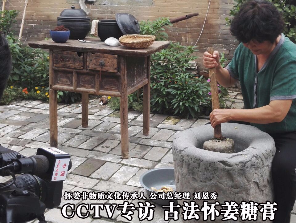 公司總經(jīng)理劉恩秀,懷姜非物質文化遺產(chǎn)傳承人現(xiàn)場用傳統(tǒng)工藝古法熬制懷姜糖膏。